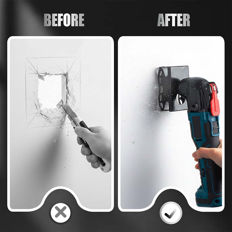 PRECISIONSÅTNING – Konstruerad för att ge exceptionellt rena och jämna snitt. Detta förhindrar skador på omgivande gipsväggar eller lister, vilket garanterar ett professionellt resultat varje gång och eliminerar behovet av frustrerande reparationsarbete.