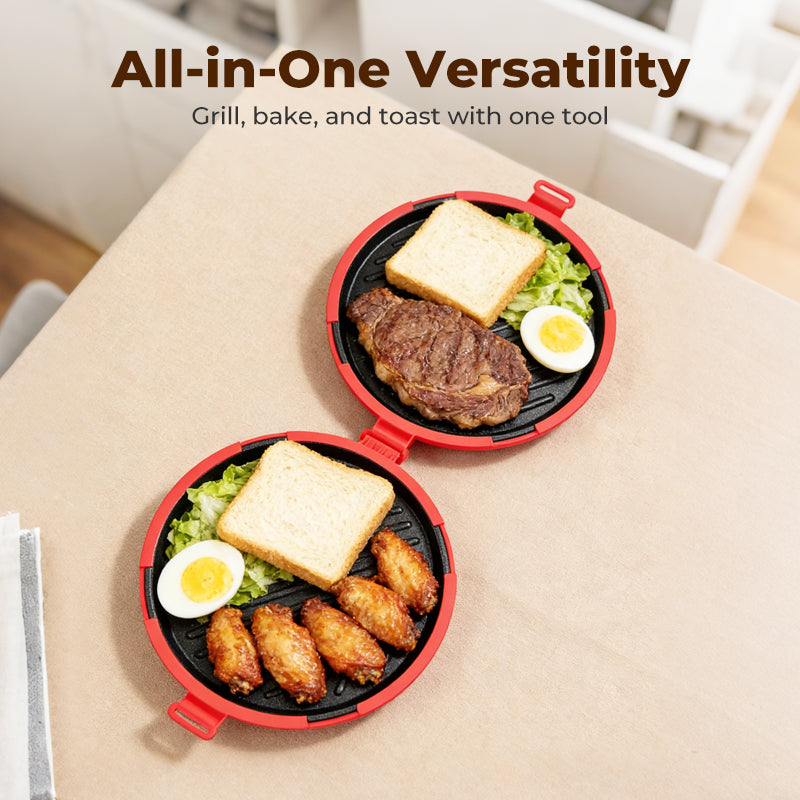 MÅNGSIDIG MATLAGNINGSPARTNER – Från krispiga pizzor och grillat kött till perfekt rostade smörgåsar – denna allt-i-ett-grillpanna klarar allt. Njut av ett brett utbud av läckra måltider utan att fylla köket med flera apparater.