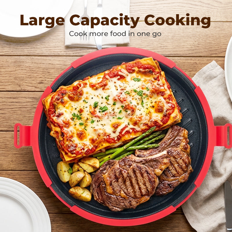 STOR KAPACITET – Tillaga generösa portioner för hela familjen på en gång. Den rymliga insidan rymmer enkelt tjocka smörgåsar, flera korvar eller en pizza, vilket gör matlagningen för grupper snabb och enkel.