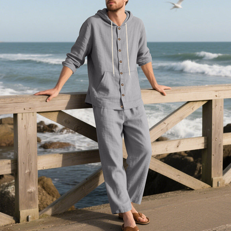 2-delat set för herr med lös långärmad tröja med huva och byxor med vida ben