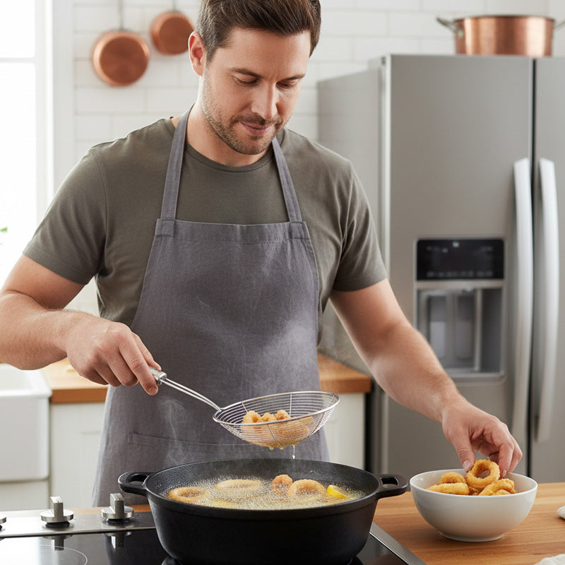 đł 50% RABATT! đ„ Skimmer-sked i rostfritt stĂ„ltrĂ„dsnĂ€t â HĂ„llbar, LĂ€tt att rengöra & Perfekt för Fritering & SĂ„llning đ„