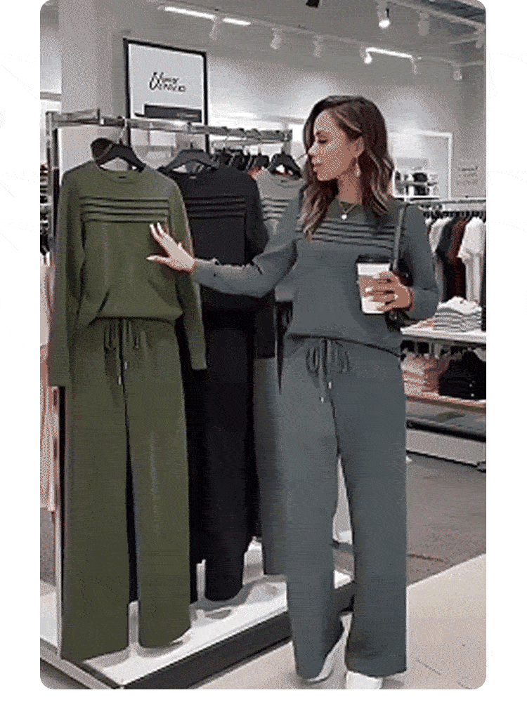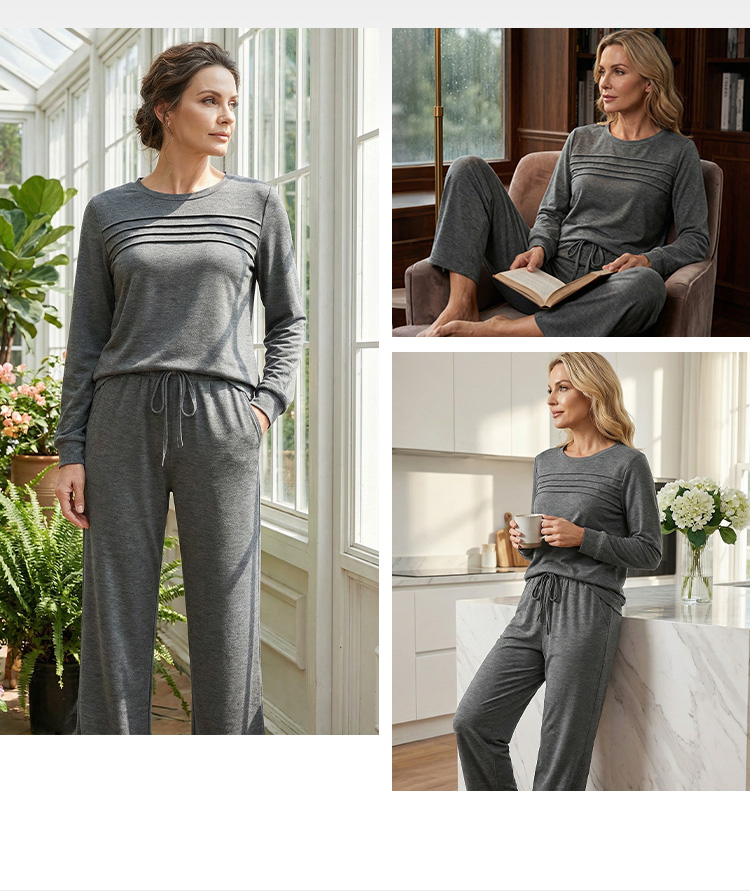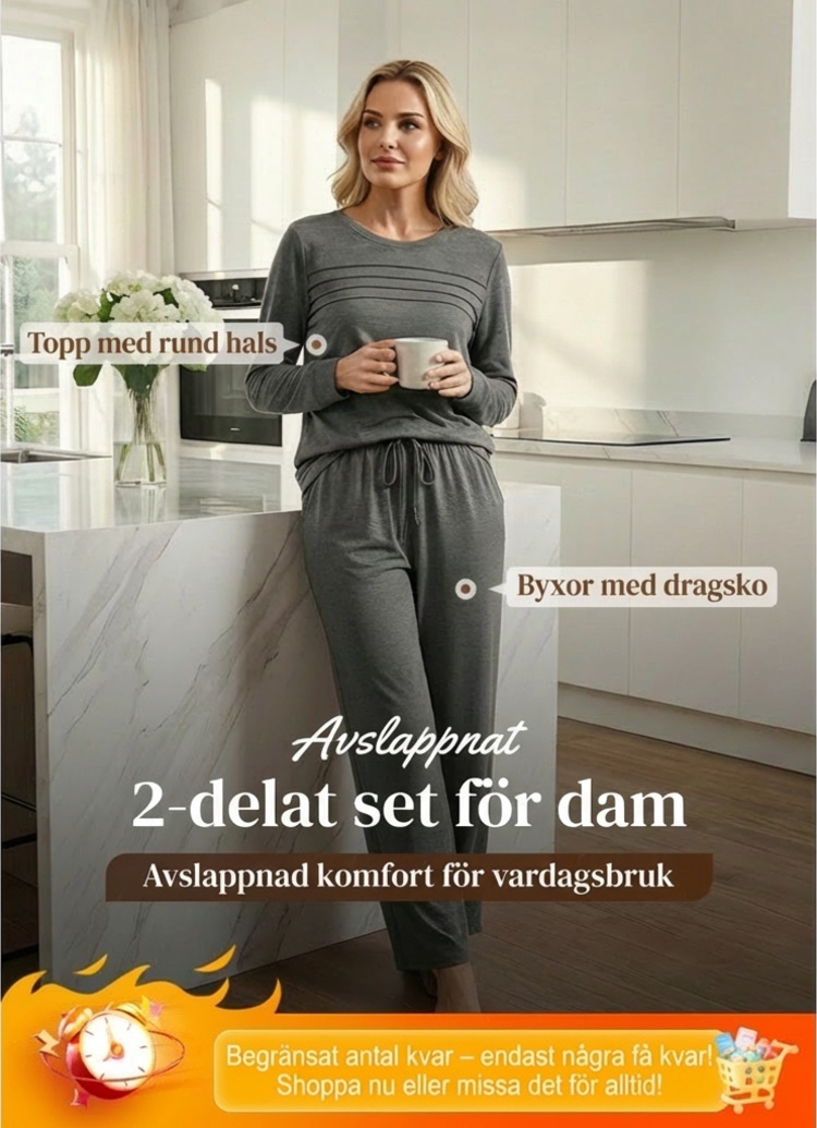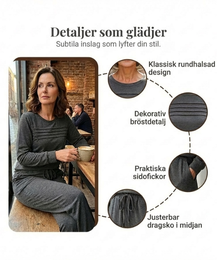 Avslappnat set med topp och byxor med dragsko för dam