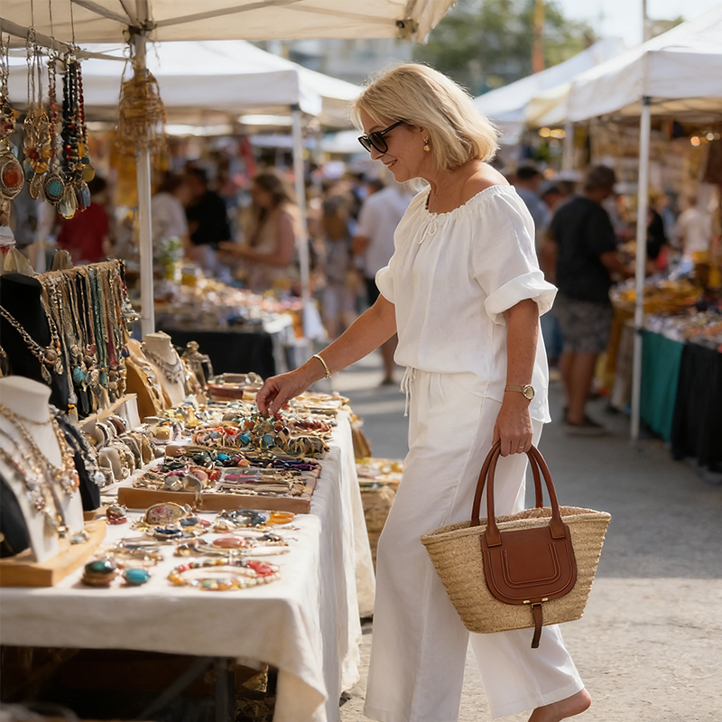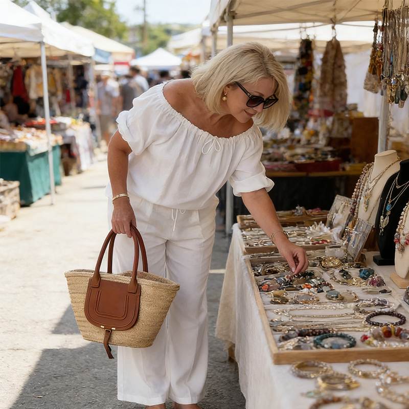 PREMIUMTYG – Håll dig sval och bekväm hela dagen. Detta andningsbara tyg är exceptionellt lätt och mjukt mot huden, vilket gör det perfekt för varma klimat och sommardagar.